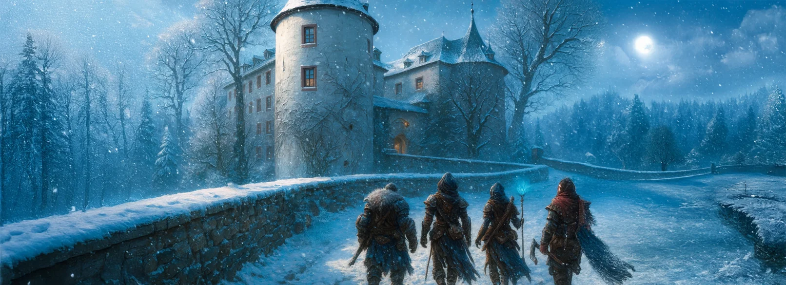 Hier geht es um Atmosphäre, Charakterspiel und das Eintauchen in eine lebendige Fantasywelt – eine alte Burg, ein rauschender Wald und Geschichten, die man selbst erlebt.