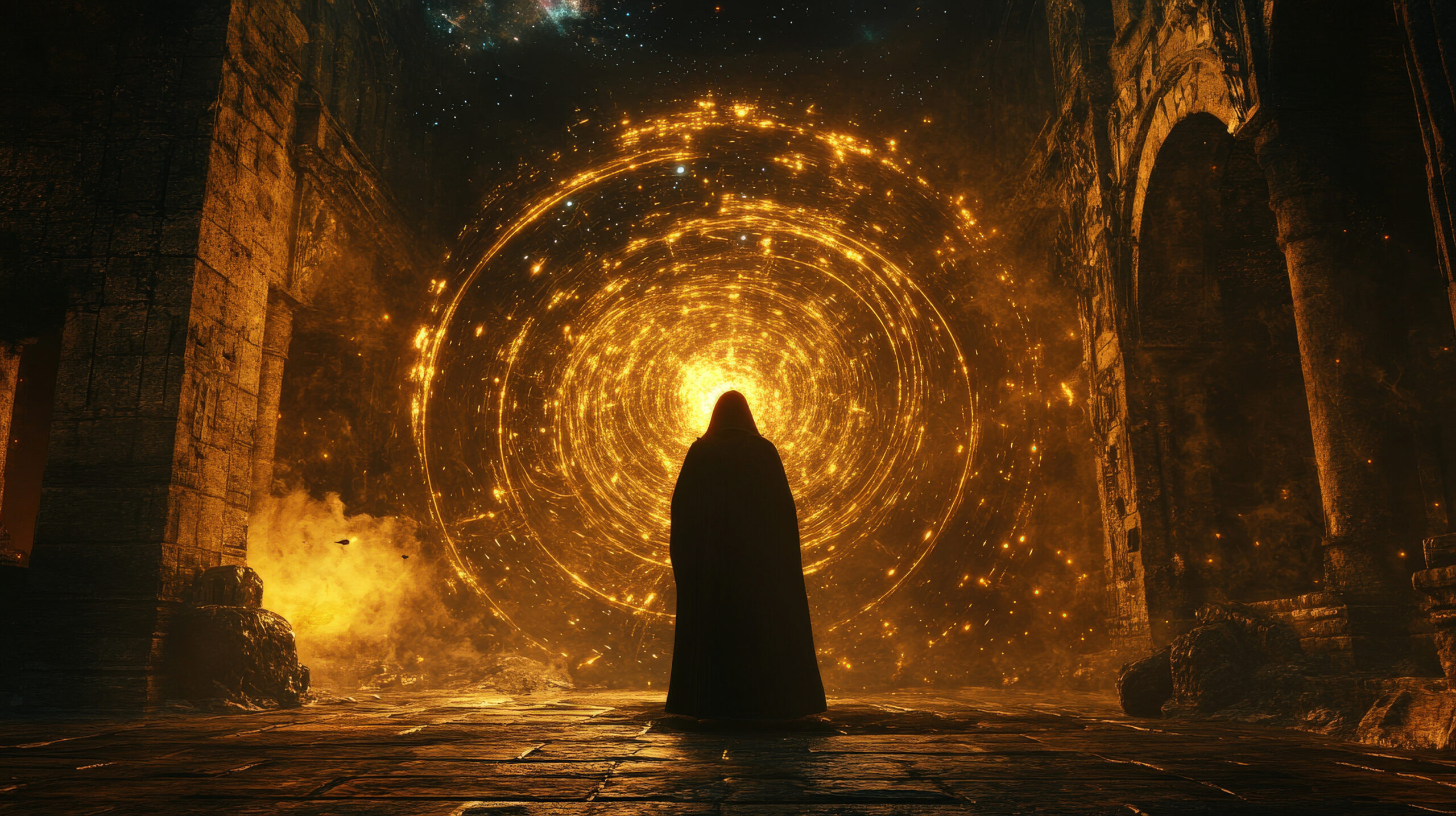 Plötzlich erbebt die Burg wieder unter ihren Füßen – dieses Mal lauter als zuvor. Dann verebbt der Donner und verhallt in den Mauern von Alurion. Stille senkt sich herab.